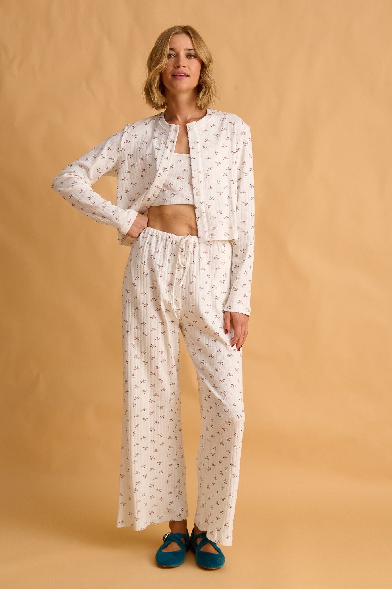 pointelle pants - pink flowers