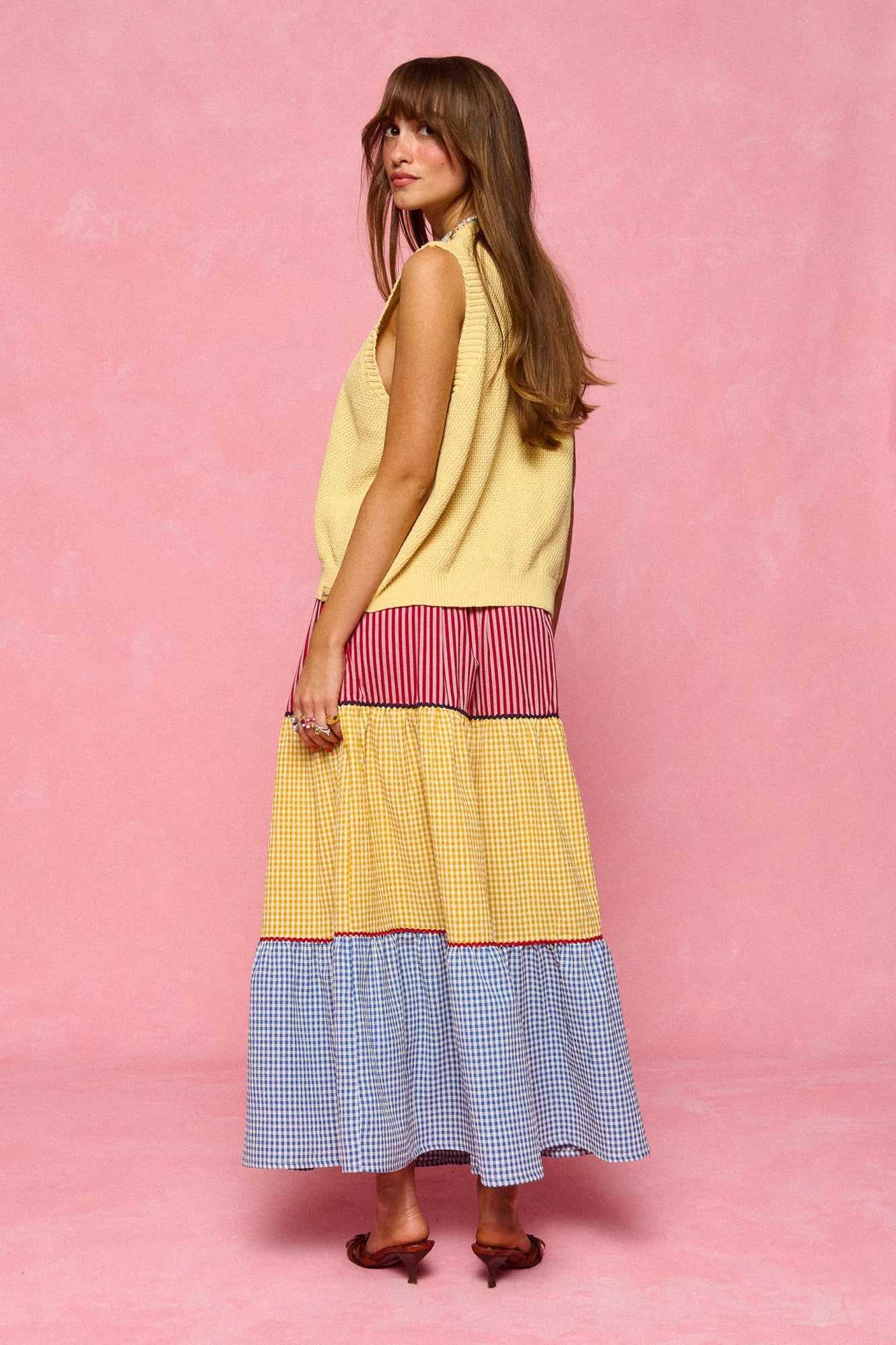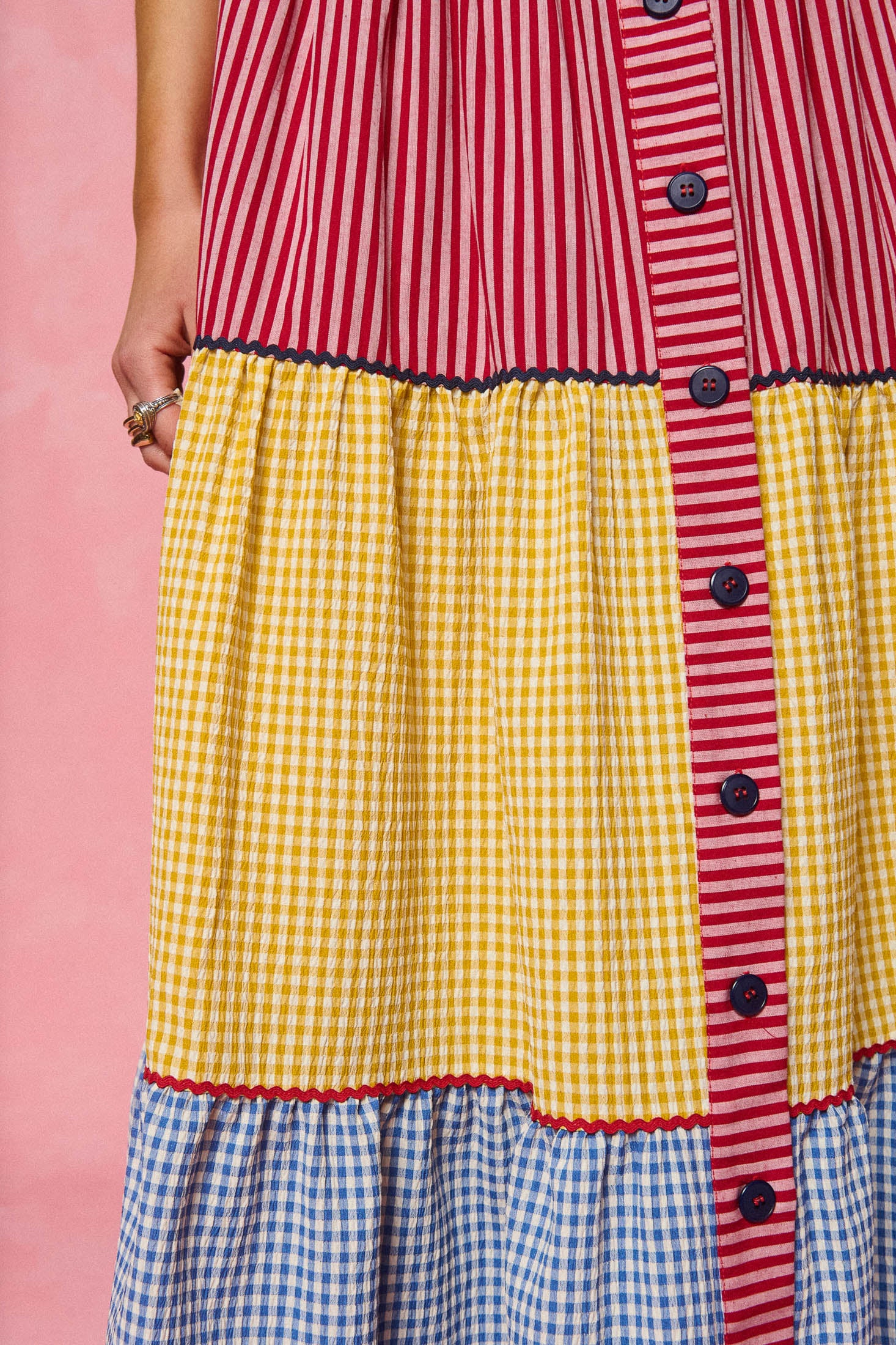 • Mixed stripe & gingham panels