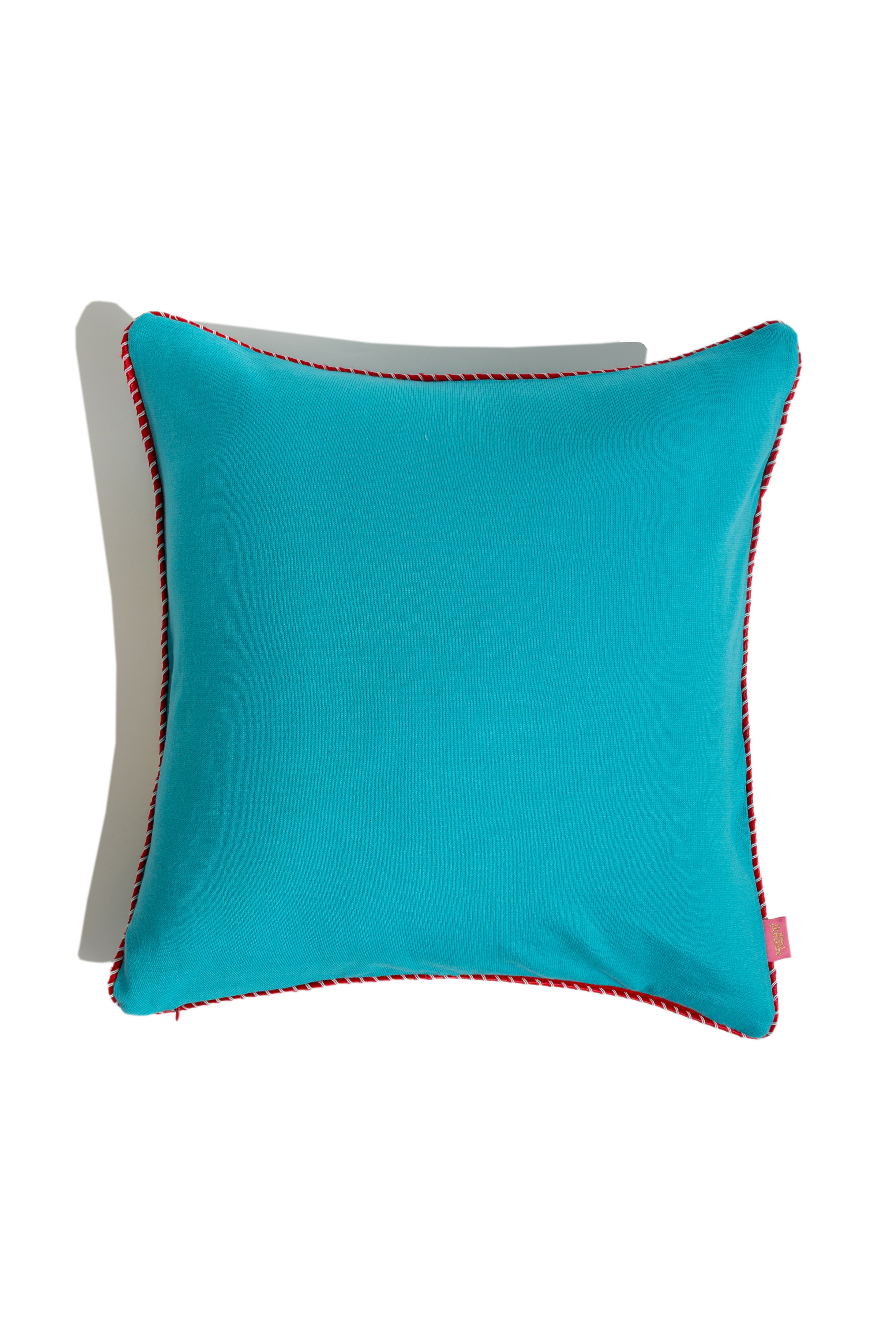 - Soft knit surface with crisp red-and-white piped edging
