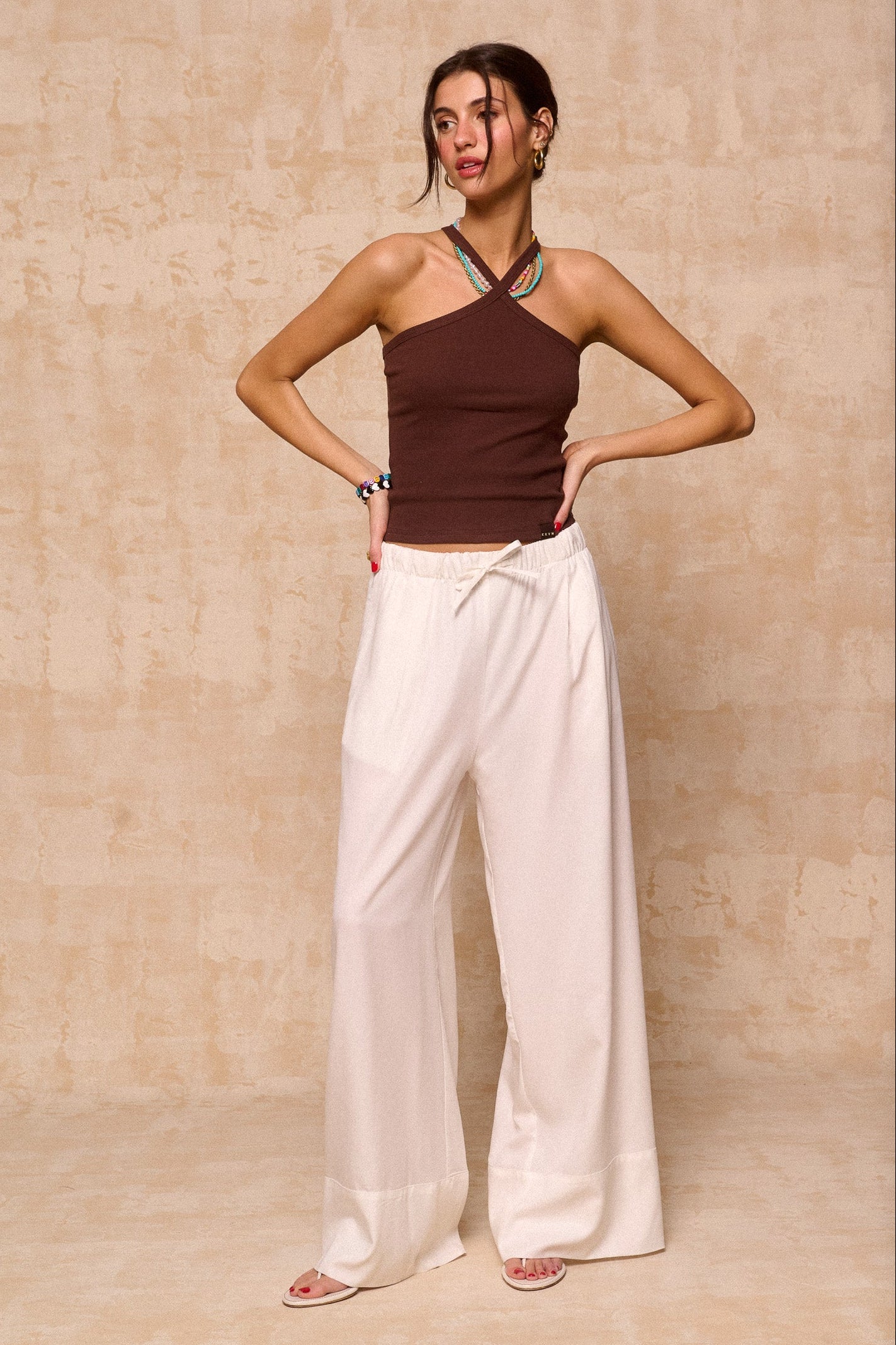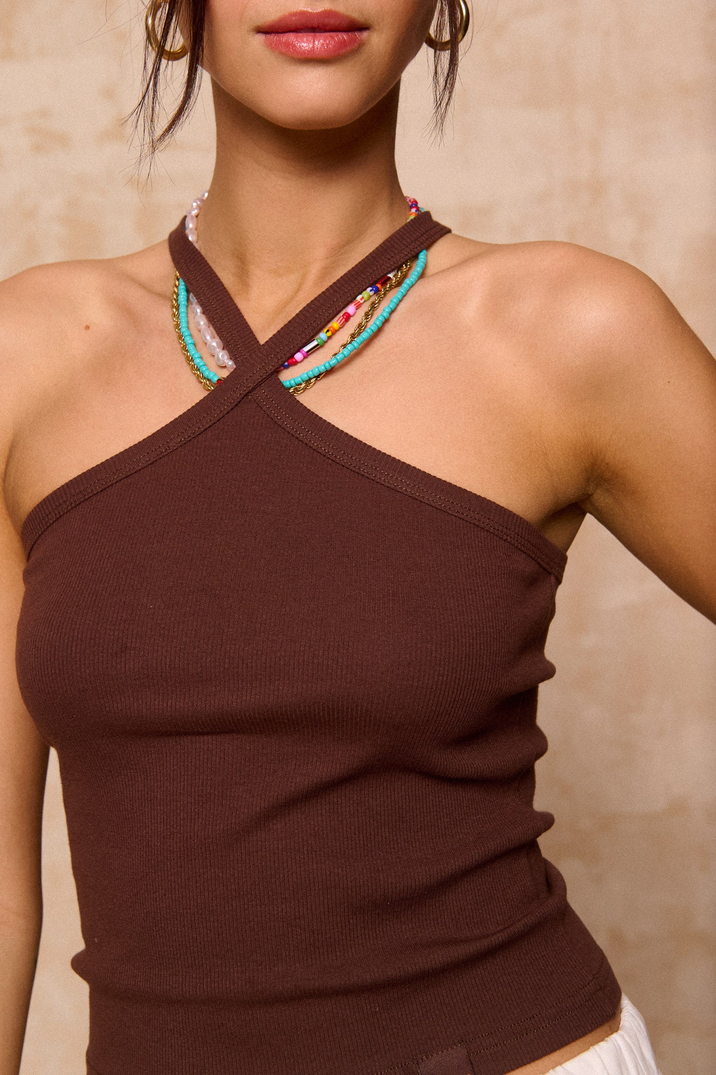 • Cross-front halter neckline