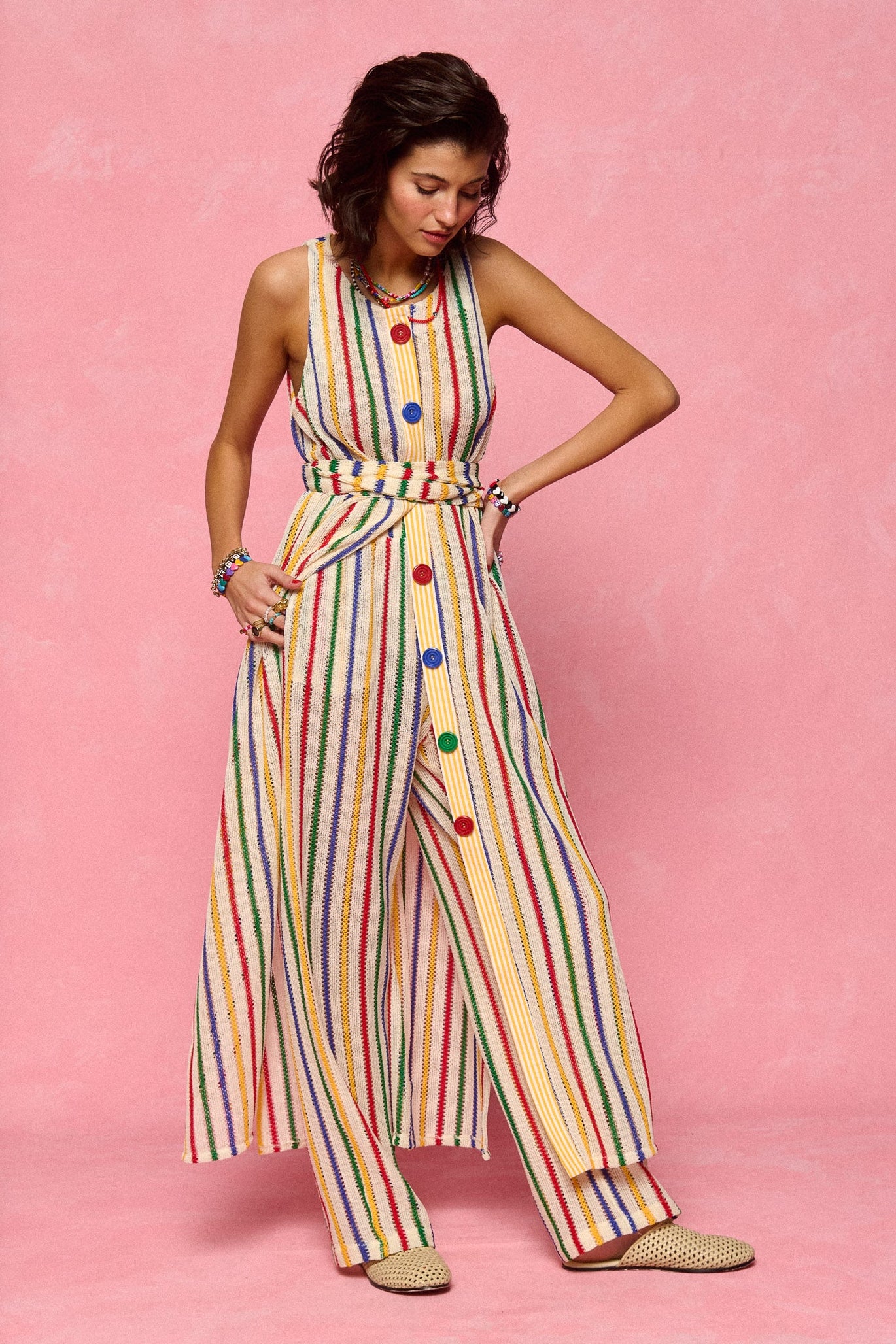 trousers - off white, multicolor stripes