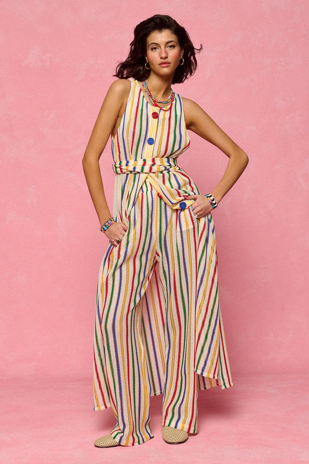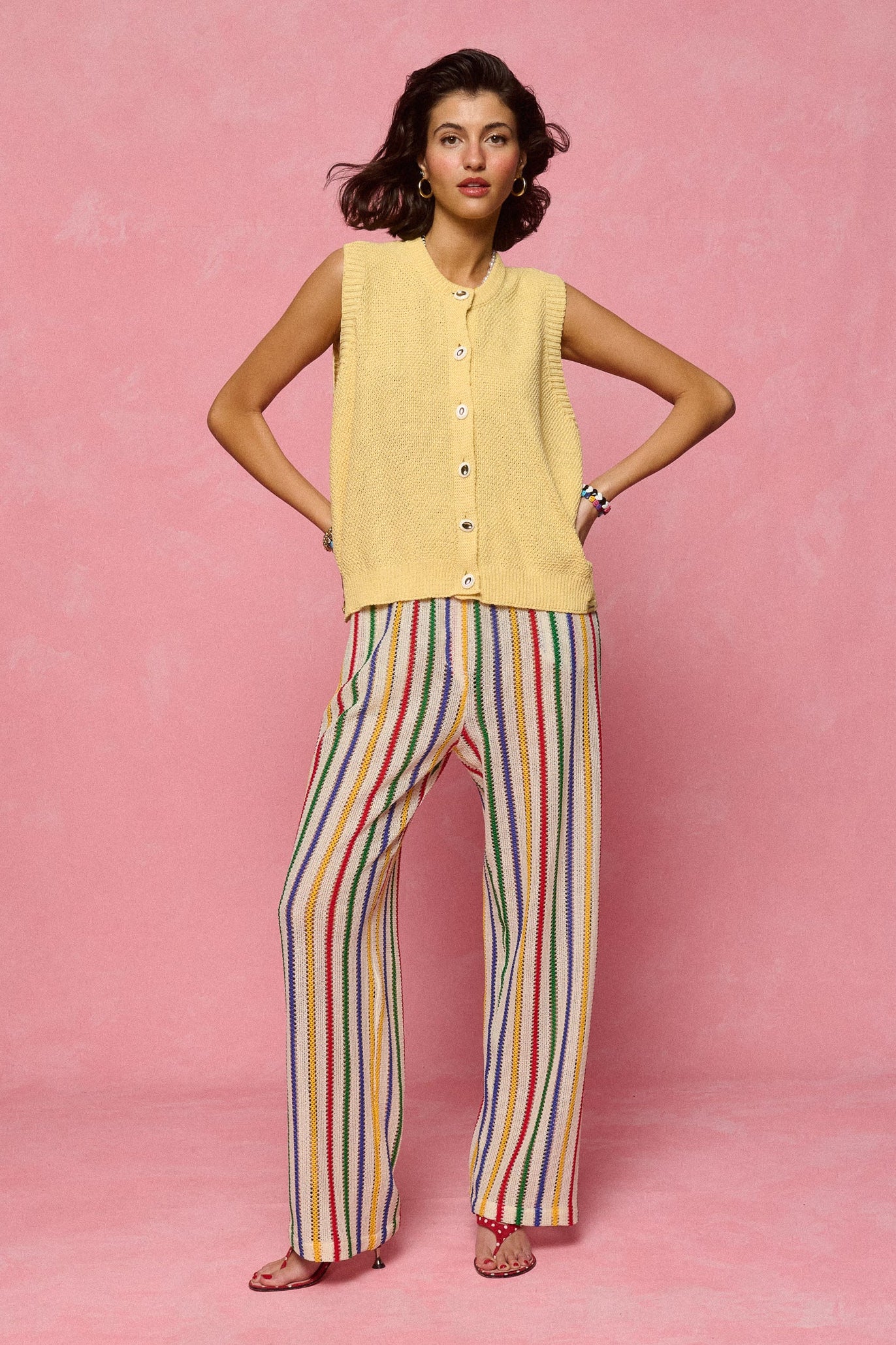 - High-waisted knit trousers