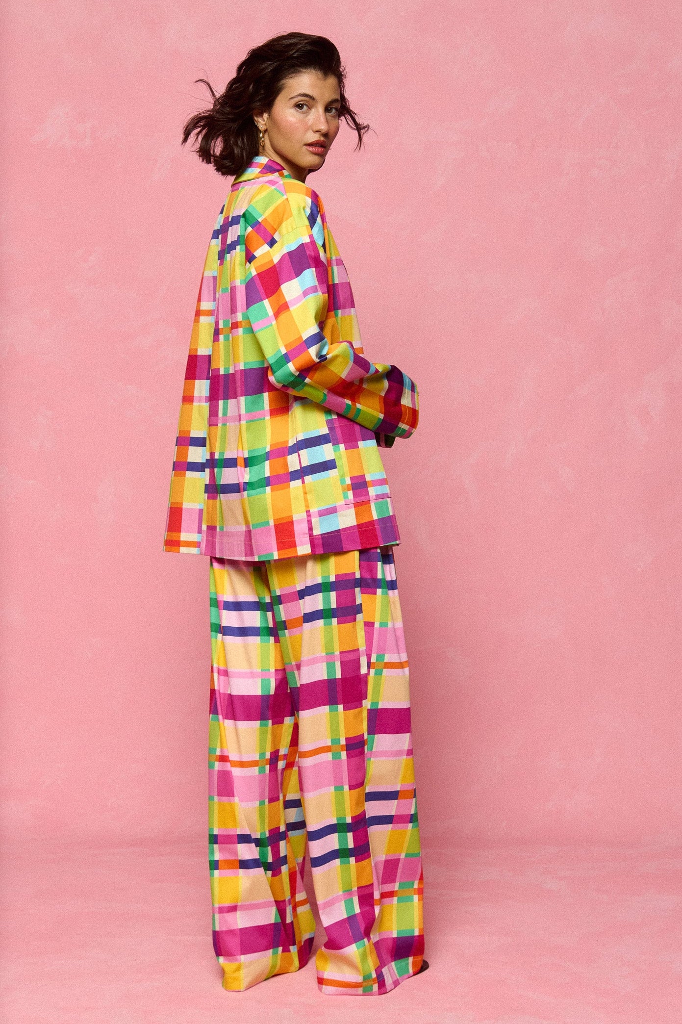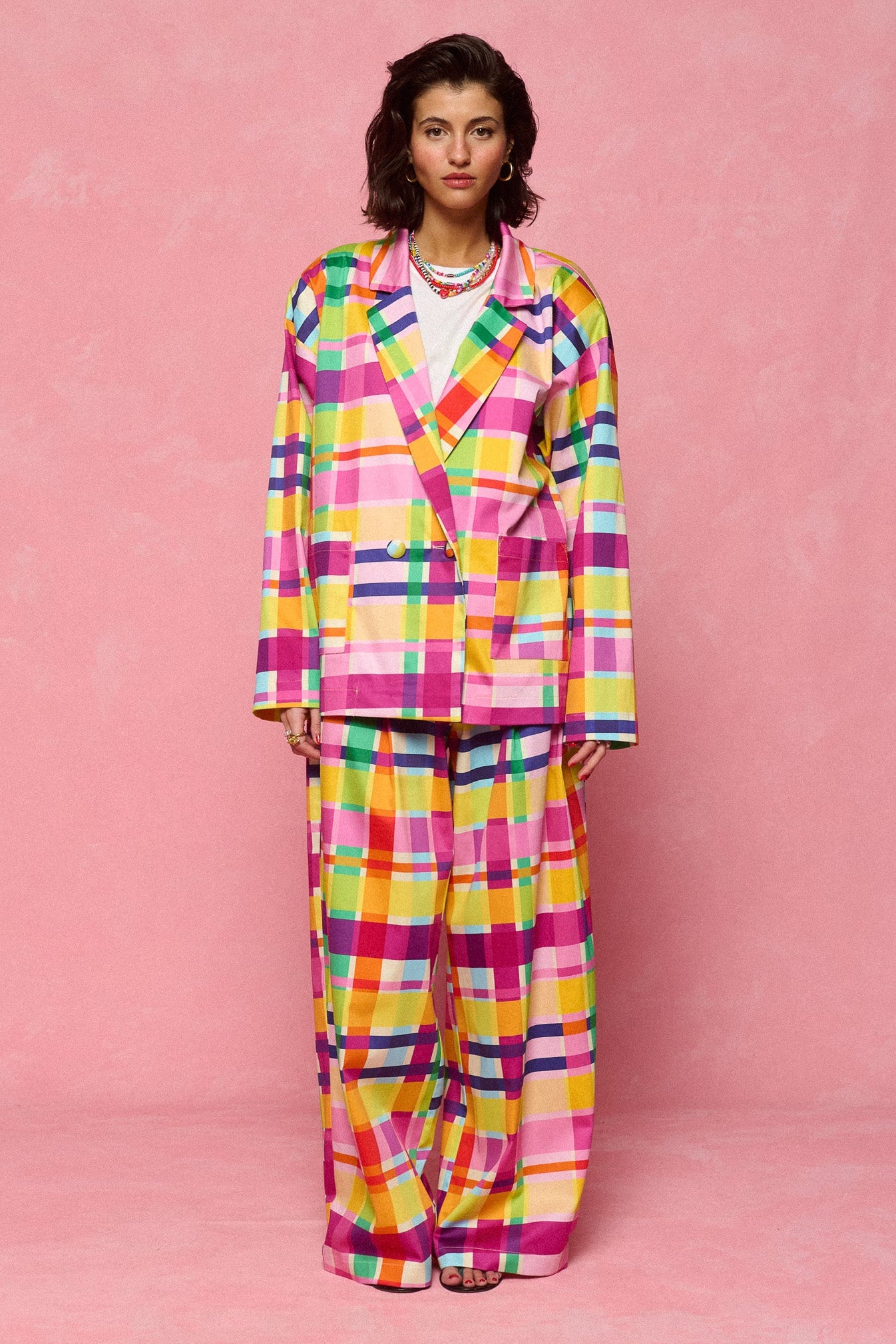 - All-over multicolour check pattern